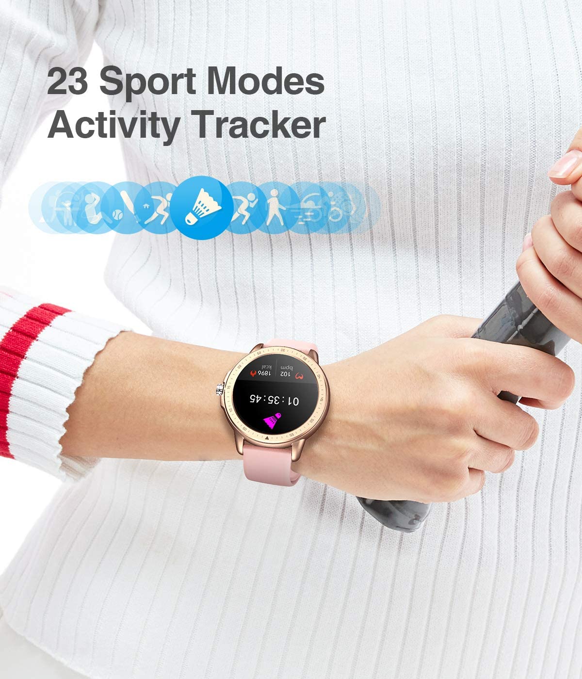 - вЊљBest gift and after-sale protection This smart watch has a simple and beautiful design, a color high-definition touch screen, and 20+ dials to change the interface, and you can even choose your favorite image as the interface. Available in multiple languages, this fitness watch is the best gift for men, women, the elderly, and children. In addition, we provide free return within 1 month, and product warranty within 6 months, which is a fitness tracker that you can use with confidence.