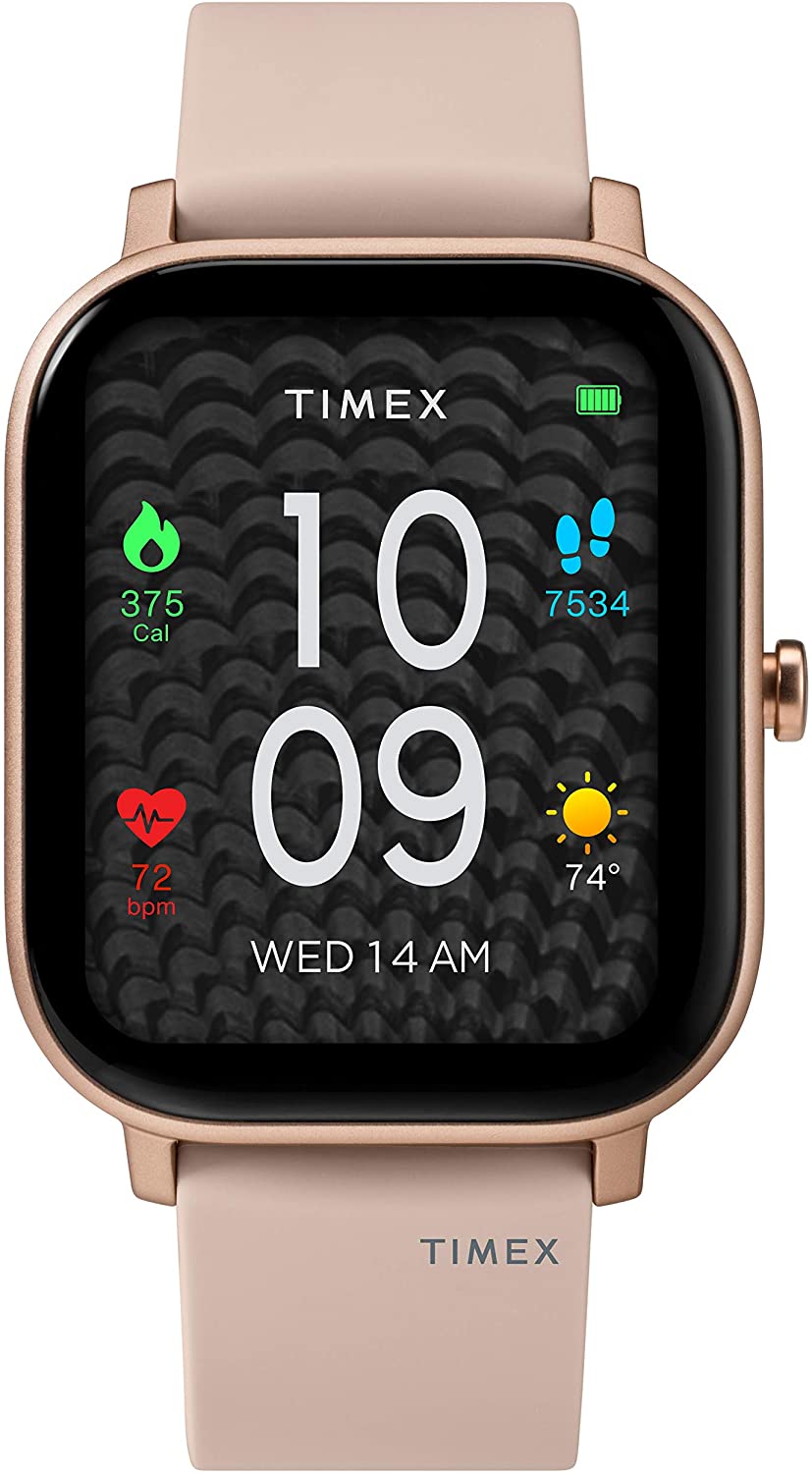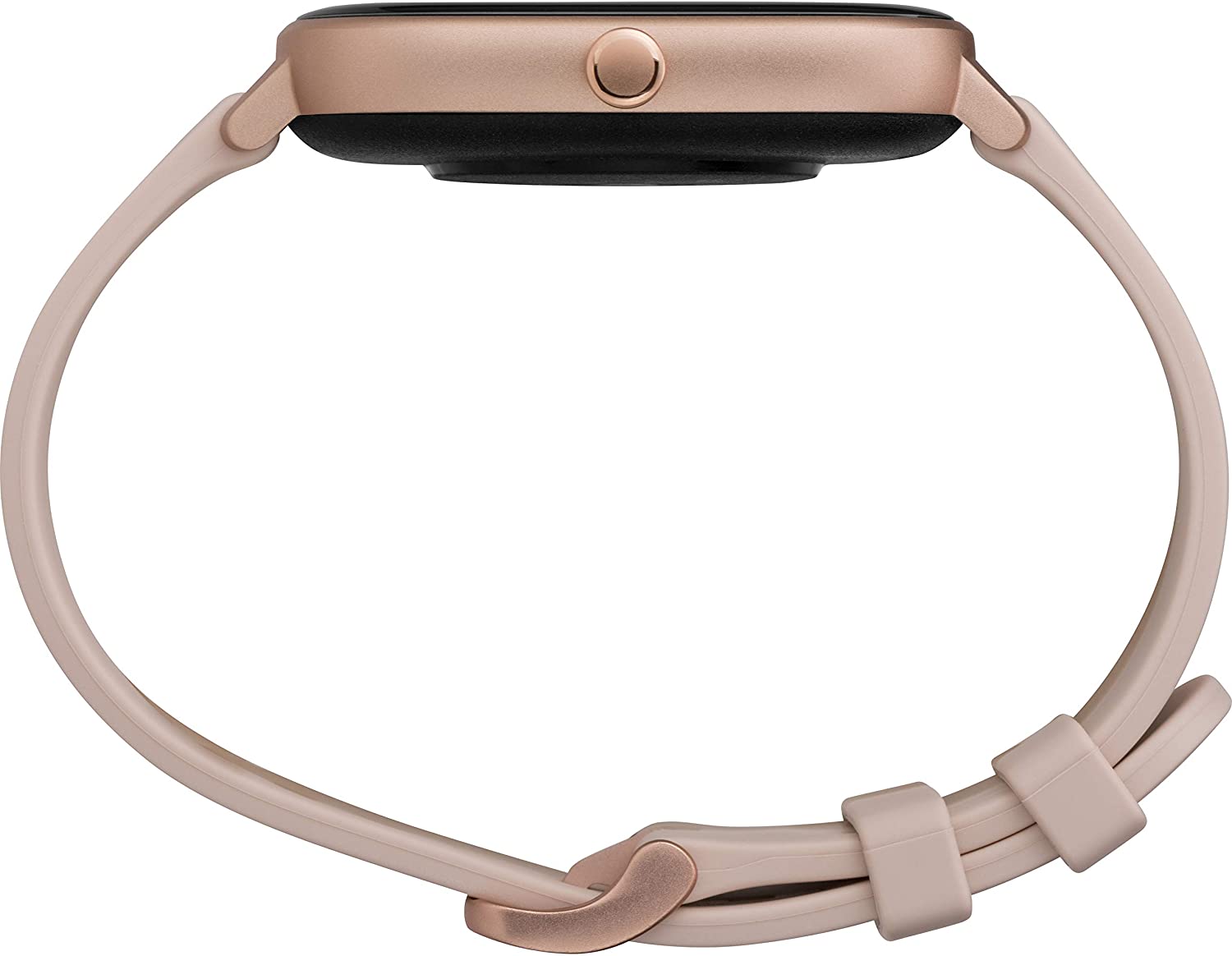- 20 millimeter blush silicone strap features Quick Release spring bars; 36 millimeter aluminum alloy case with Gorilla Glass